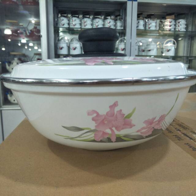 Bowl enamel 25cm dilengkapi dengan tutup e