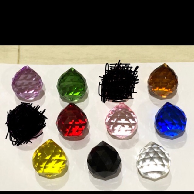 Kristal untuk lampu hias atau dekorasi Bentuk : baksoUkuran 40 mmWarna:Bening ( ada 30 mm dan 40 mm)UnguHijauCoklatMerahPinkBiruHitam pekatKuning1 lubangHarga untuk 1 pcs1 dus isi 40 pcs ( ukuran 40 mm )Beli banyak makin
