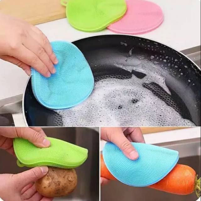 Silikon pembersih peralatan dapur serbaguna dengan bulu silicone tebal dan lembut sebagai pengganti spon yg biasa kita gunakanbahan silicone yang Fleksibel dan lembut. Mudah untuk Membersihkan smua peralatan dapur,Menahan Kuman,dan dapat disterilkan dalam air rebus, Microwave atau pencuci piring.Tidak membuat peralatan memasak anda tergores dan bener2 terhindar dari bakteri.size diameter 11.5cmimportbahan silicone halus dan