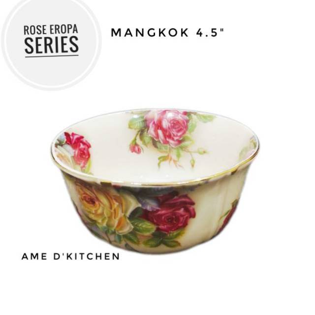 Series rose eropa Ready stock mangkok 4.5" rose eropa series WH17233Size : D = 11 cm, T = 5.5 cmPrice : 60.000/pcMaterial : keramikBerat : 500 gramMelayani pembelian dalam jumlah eceran maupum g