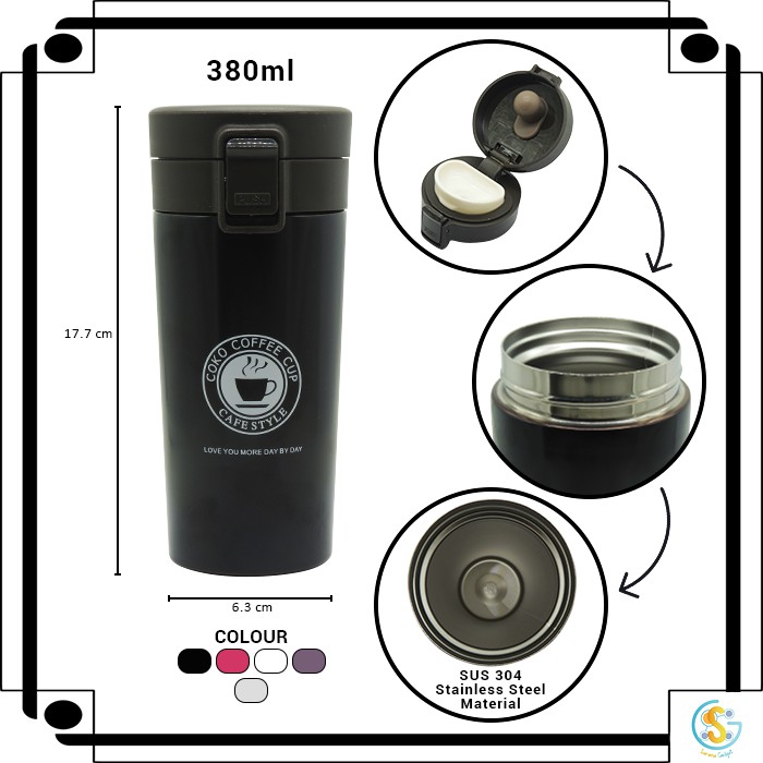Termos Travel Double Wall Stainless Steel Vacuum Cup Travel Mug B46READY STOCK!!- Black Matte- White Matte- Choco Glosy- Red Glosy- Silver GlosyFitur:-3D vakum baja luar coverPP plastik dan stainless steel kombinasi sempurna tutupnya- Dirancang clip on untuk mengunci tutupnyaSpesifikasi:Kapasitas: 380mlUkuran: 17.3x7.7x6.5cm (Lebar Tinggi * Lebar Atas *)Bahan: 304 stainless steelWarna: Hitam, Putih, Pink, Cokelat, SilverPaket termasuk:1 x Vacuum Insulation Mug#termosstainlesssteel #t