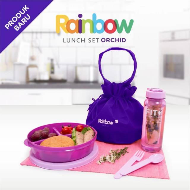 Rainbow Lunch Set teman bekal yang paling kece. Ukurannya yang jumbo membuat produk ini jadi favorit untuk bawa bekal ke kantor, piknik, dan lain sebagainya. Dan ditambah dengan botol Fit+ yang sesuai dengan warna lunch box. Setiap lunch box memiliki separasi/pemisah menjadi 3 bagian agar makanan tidak tercampur satu sama lain. Dapat sendok dan BONUS Lunch Bag. Tutup yang rapat menjadikan bekal aman untuk dibawa.Detail produk :BPA FreeFood GradeMicrowave safePlastik PP51 Set berisikan ;1 lunch box1 pasang sendok & garpu1 Lunch Bag sesuai warna lunch box1 Botol Fit+ 780 MLUkuran Lunch Box :Diameter : 20cmTinggi : 5cmBerat Produk - Volume : 1.45 kg- Real : 0.52 kg#BPAfree#foodgrade#bekal#infusedw
