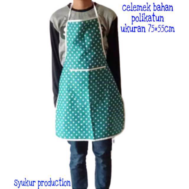 Celemek kain bahan polikatun dengan motif polkadot..Nyaman di pakai karena terbuat dari bahan yang terpilih..Gambar hanya sample saja untuk motif yang lain bisa di tanyakan..P:75cmL:55cm#celemek