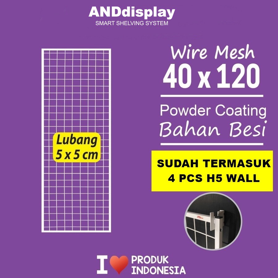 WIRE MESS 40*120CM + H5 WALL PUTIHSUDAH TERMASUK SKRUP DAN VISHER RAM INI SALAH SATU PRODUK KAMI YANG MEMILIKI FUNGSI UNTUK MENGGANTUNG BARANG ''" BARANG DISPLAY .ATAU KEPERLUAN LAINNYA JARAK KOTAK WIRE MESS 5CMX5CM TERBUAT DARI BESI POWDER COATING PUTIHHARGA DAN UKURAN SESUAI JUDULHARAP DI BACA :BUKA JAM 09.00 - 17.00 HARI MINGGU DAN TANGGAL MERAH TUTUPBARANG YANG KAMI KIRIM SUDAH KAMI CEK TERLEBIH DAHULU KERUSAKAN SEWAKTU PENGIRIMAN DI LUAR TANGGUNG JAWAB KAMI,KALAU MAU KOMPLAIN MASALAH KERUSAKAN BARANG SEWAKTU PENGIRIMAN SILAHKAN KOMPLAIN KE PIHAK KURIR NO RETUR NO KOM