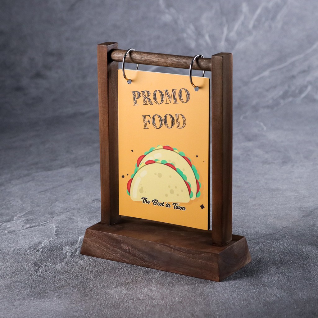 TENT TABLE RESTORAN - KAYU MAHONIPILHAN WARNA : COKLAT MUDASize 16 x 7 x 22cmarea cetak kertas 10 x 16cmThickness 20mmMaterial High Quality Mahogany Wood Finishing Natural WoodstainBarang ini biasa di gunakan di atas meja restoran, kegunaan tent table ini, untuk memberika informasitentang menu makanan dan minuman yang sedang promo dan menu baru di restoran tersebut. dan bisajuga di gunakan untuk informasi lain. tent table sangat efektif karena customer resto langsung mendapatkan informasitentang seputar restoran.NB : Harga di atas adalah harga per pcs atau harga satuan.Pembelian ready stock 24 pcs dapat harga spesial, chat kami terlebih dahuluModel custom bisa sesuai keinginan pembeli, Min order 24 pcs dan chat kami terlebih dahulu Produk handmade, tiap produk berbeda serat kayu, motif dan warna. SELAMAT BERBE